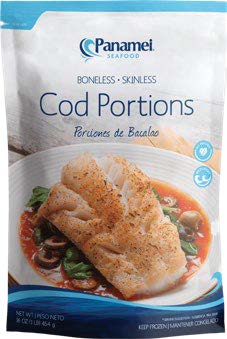 Porciones de bacalao Panamei, perfectas para recetas caseras y gourmet. Empaque de 10×1 asegura calidad y frescura.