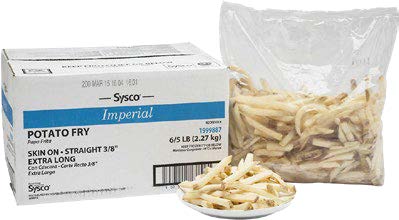 Papas extralargas con piel en presentación de 6 bolsas de 5 libras cada una. Perfectas para freír y acompañar comidas.
