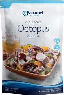 Pulpo precocido, perfecto para recetas rápidas y deliciosas. Empaque de 20×1 para mantener la frescura y practicidad.