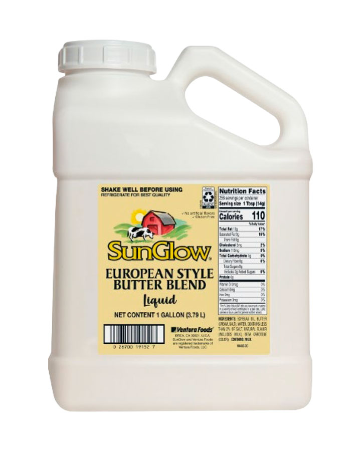 SunGlow® European Style Liquid Butter Blend es un producto de alta calidad ideal para cocinas profesionales. Su presentación y sabor lo hacen perfecto para restaurantes, servicios de catering y uso institucional, garantizando consistencia y rendimiento en cada preparación.